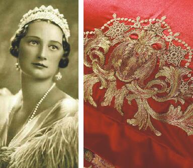 花型:美泉宫精美浮雕细节与丰富花卉组合成比利时王妃王冠的心形构图。